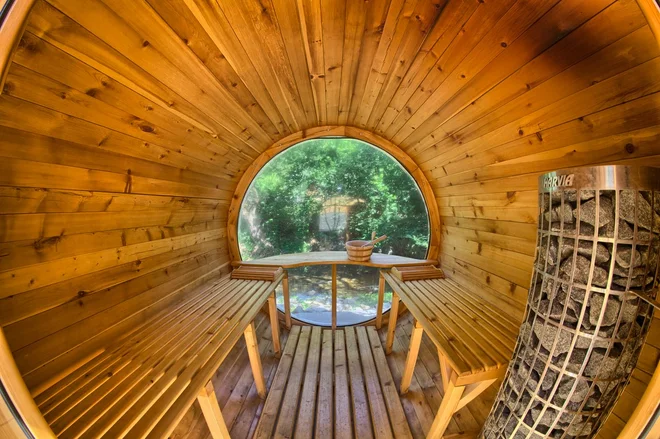 - Finská sauna Discovery, sauna Sphere se světelnou aromaterapií, dětský bazén, venkovní vířivka, venkovní ochlazovací káď, ochlazovací sprcha, relaxační místnost s lehátky a krbem