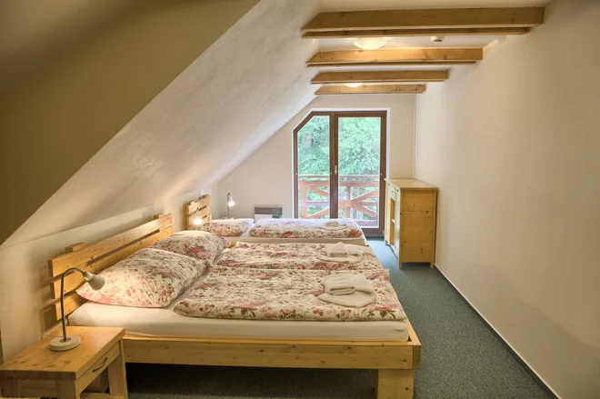 Do dvoulůžkového nebo třílůžkového pokoje se díky možnosti přistýlek vejdete podle potřeby až v pěti. Pokoje jsou pohodlné a zařízené nábytkem z přírodního dřeva. Samozřejmostí je samostatná koupelna se sprchovým koutem a toaletou i plochá TV.