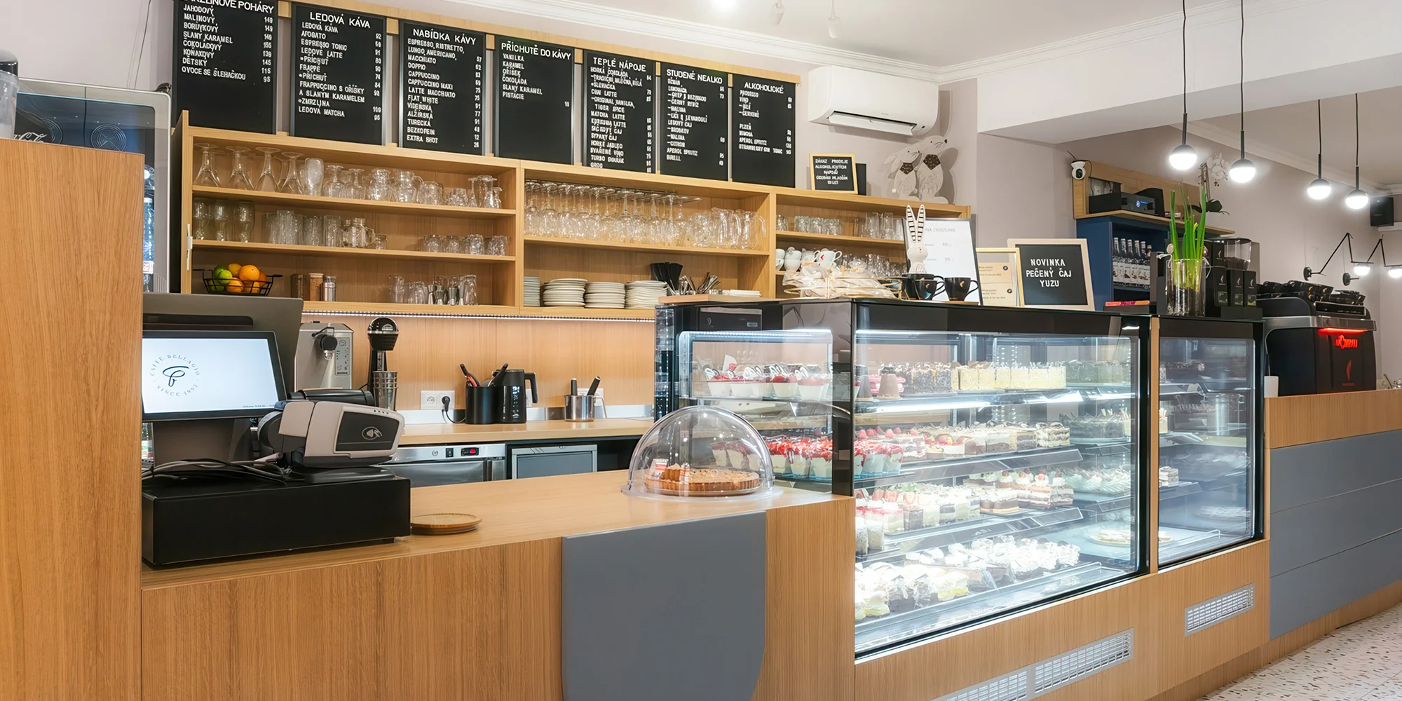 Vychutnáte si tu příjemnou chvíli, kterou vám zpříjemní dort či zákusek přesně podle vaší chuti. Nabídka se pravidelně obměňuje – obvykle v ní najdete např. bezé rolády, cheesecake, pařížský dort, panna cottu, koláče, špičku, punčové řezy a v sezóně také zákusky s vánoční či jinou tematickou dekorací. Stejně tak si zvolíte i svůj oblíbený teplý nápoj. V nabídce najdete tureckou kávu, espresso, cappuccino, a pokud kávu nepijete, můžete si dát horký nápoj dle aktuální nabídky.