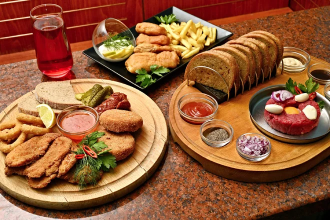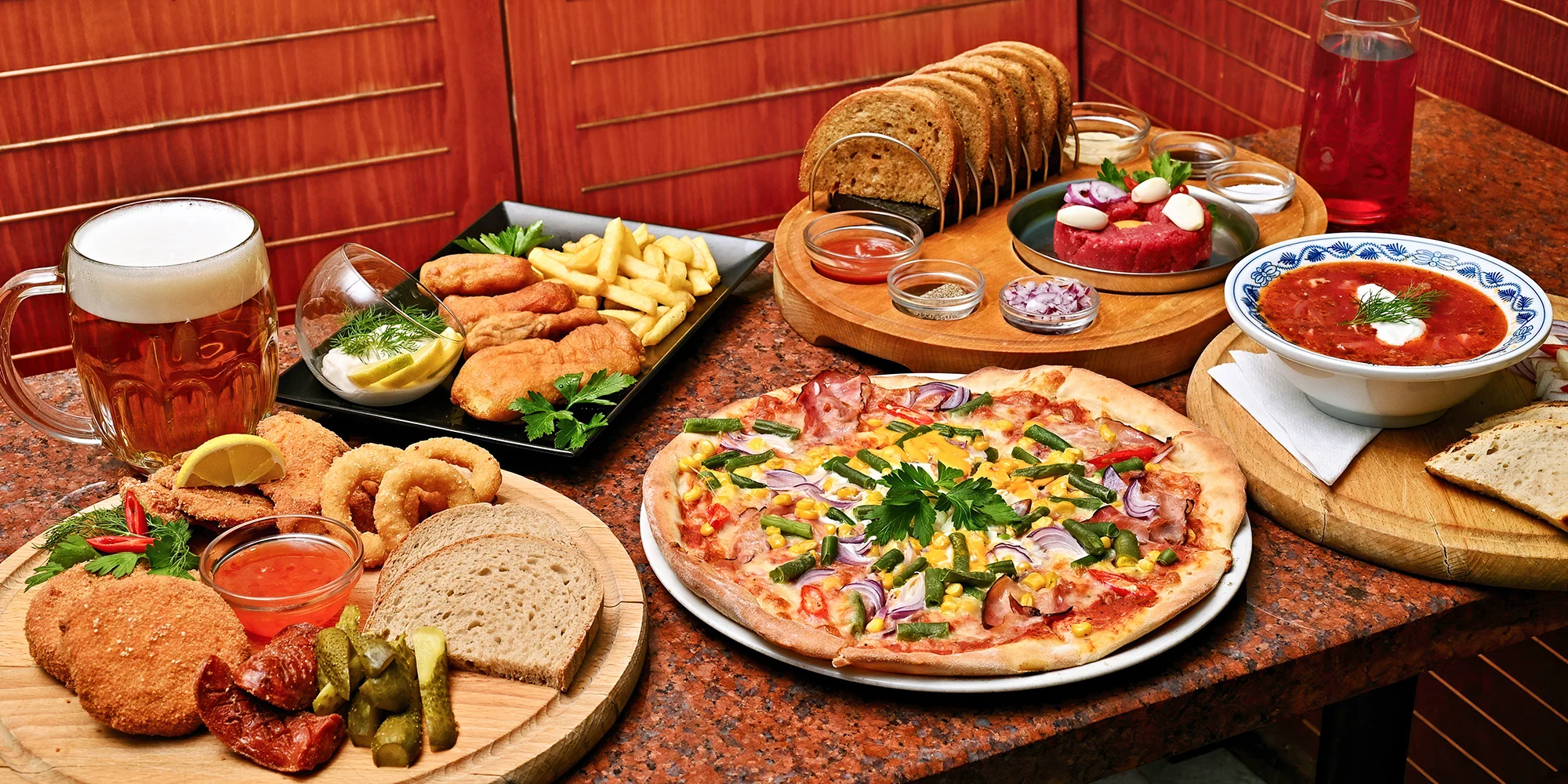 Dopřát si můžete opravdu pestrou hostinu. Jako lehký start si dejte třeba hovězí rostbíf nebo úžasný sleďový tatarák s kapary a bylinkovým olejem, milovníky polévek osloví například tradiční boršč podávaný s kysanou smetanou. Z hlavních chodů si dejte třeba plněné holubce, skvělou pizzu, pelmeně nebo kachní prsíčko se šafránovým rizotem. Hodláte sem zajít jen na vínko nebo pivo? K němu vám nabídnou třeba grilovaný camembert.