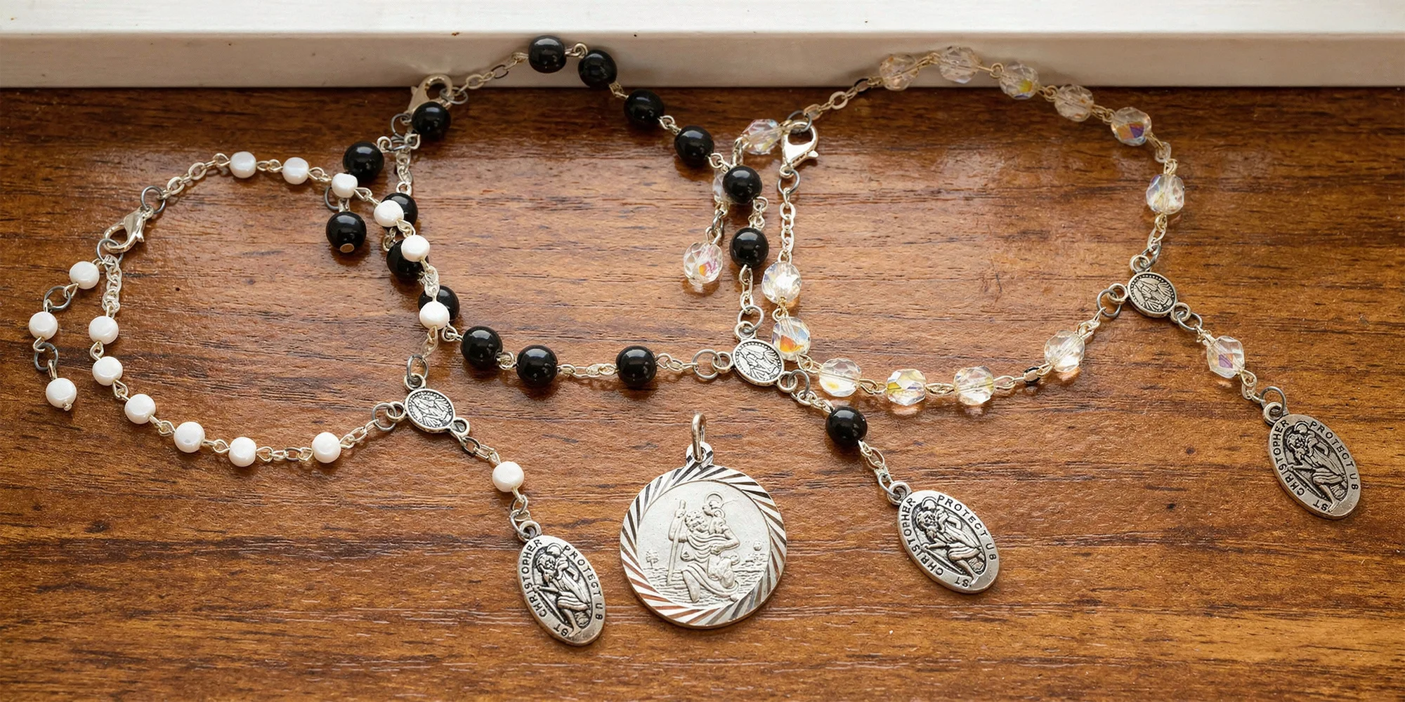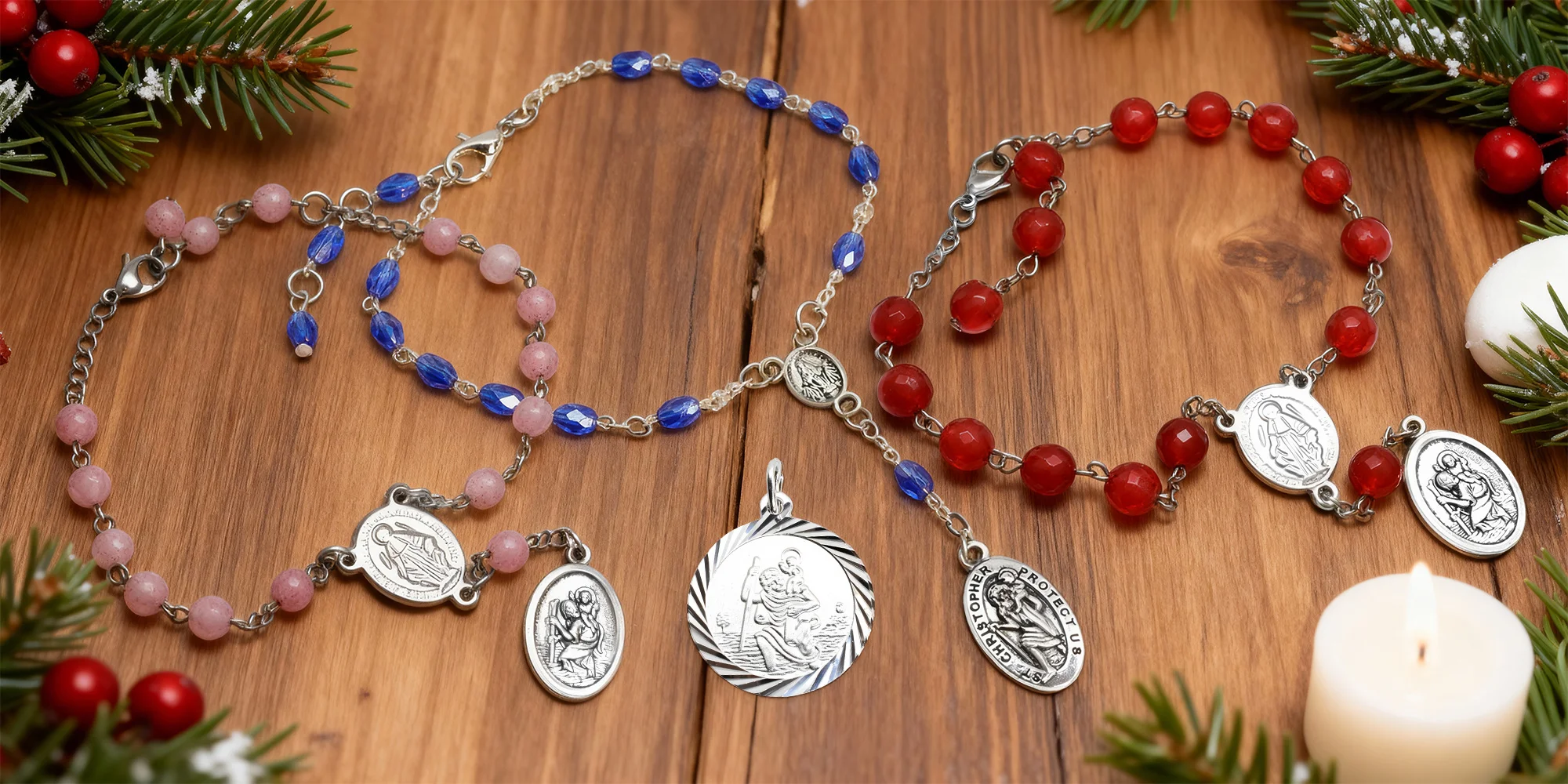 Ať už někam vyrážíte pěšky, jedete autem, nebo třeba letíte do zahraničí, jistě budete klidnější, když s sebou budete mít svatého Kryštofa – patrona všech poutníků a cestovatelů. V nabídce krátké růžence nebo přívěsek s tímto světcem. Všechny varianty jsou kvalitní bižuterie, která je vyrobená v České republice.