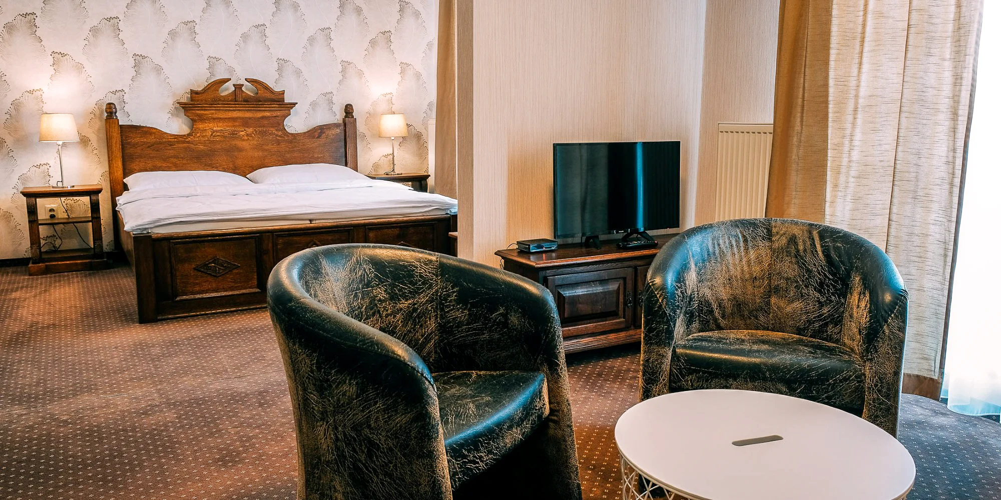 Ubytování v kterémkoli z pokojů bude opravdovým zážitkem. Ručně vyráběný nábytek, velká francouzská okna či originální doplňky v podobě tapet a rustikálních prvků dodají vašemu pobytu jedinečný šmrnc. V interiéru převládají přírodní materiály s jemnými barvami v odstínu vanilkové. Na výběr máte dvoulůžkové pokoje Standard s manželskou postelí nebo oddělenými lůžky a prostorný apartmán, který je vhodný pro rodiny s dětmi.