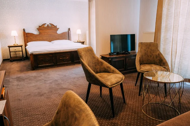 K dispozici budete mít všechny výdobytky moderní doby od televize, klimatizace, setu na přípravu kávy a čaje až po bezplatné Wi‑Fi připojení k internetu. Samozřejmostí je také vlastní koupelna s vanou nebo sprchovým koutem z litého mramoru, toaletou, fénem na vlasy a kosmetickými potřebami. Dvoulůžkové pokoje mají výhled na náměstí nebo do zahrady. V případě potřeby je k dispozici i dětská postýlka. Na uvítanou dostanete dárek, v minibaru pro vás budou připravena řemeslná lahvová piva.