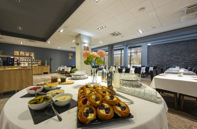 Čekají vás masové i bezmasé pokrmy, sladké dobroty, moučníky, ovoce či saláty. A pokud budete mít chuť na drink, zajděte si do hotelového lobby baru, který je pro vás otevřen denně od 9:00 do 21:30 hod.