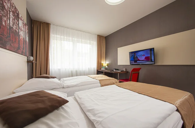 • Parkování za příplatek (Parkoviště před hotelem 4,00 EUR na noc, garážové stání 6,00 EUR na noc /od 1. 1. 2026/.)