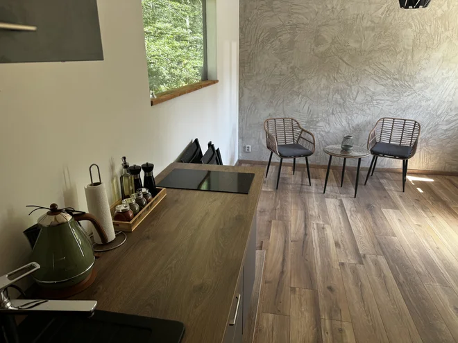 Ovšem nejdřív načerpejte veškerou energii, kterou vám domek v jizerské přírodě může poskytnout. Vyspěte se dorůžova v extra pohodlné posteli s kvalitní matrací, ráno si připravte snídani v kuchyni s výhledem na stromy a až budete připraveni, skočte si do privátní sauny, která stojí hned vedle tiny house a kromě prohřátí celého těla slibuje i krásný výhled.