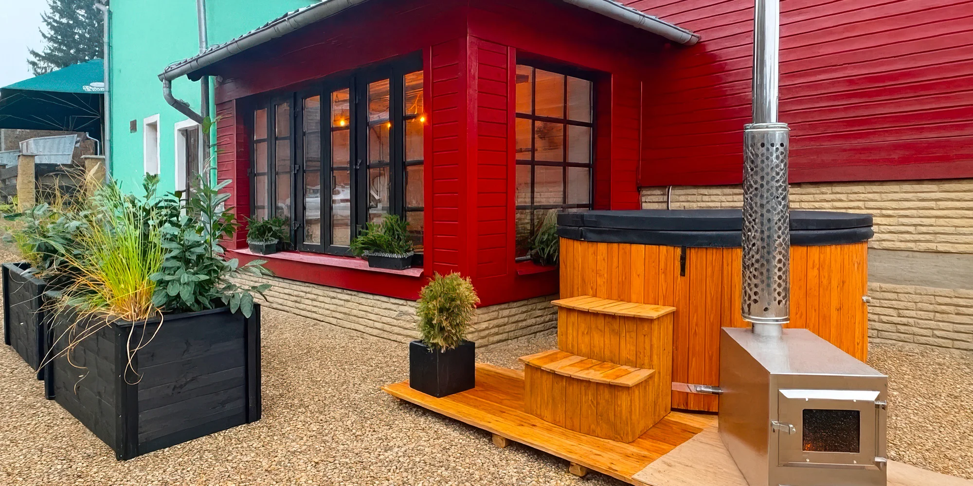 Připravena je pro vás venkovní vířivka ve stylu koupacího sudu na dřevo, suchá sauna a nechybí ani moderně zařízená relaxační místnost s walk-in sprchovým koutem. Užijte si zasloužené lenošení s drahou polovičkou nebo kamarády, wellness zóna má kapacitu pro dva až čtyři hosty. Na výběr je také varianta s lahví vína či šumivého vína.