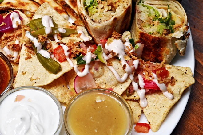 • Quesadilla – pšeničná tortilla se sýrem zapečená do křupava, černé fazole, grilované maso (kuřecí/hovězí), zelenina