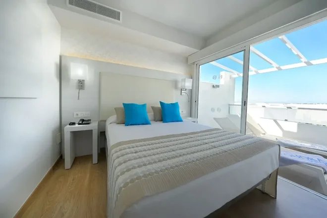 - Dvoulůžkový pokoj select, pro dospělé – dvoulůžkové pokoje ve vyšším patře a v zóně pouze pro dospělé, vlastní příslušenství (koupelna, fén, WC), telefon, klimatizace, TV, Wi‑Fi, terasa s výhledem na bazén nebo boční výhled na moře, lehátka na terase; za poplatek minibar, trezor