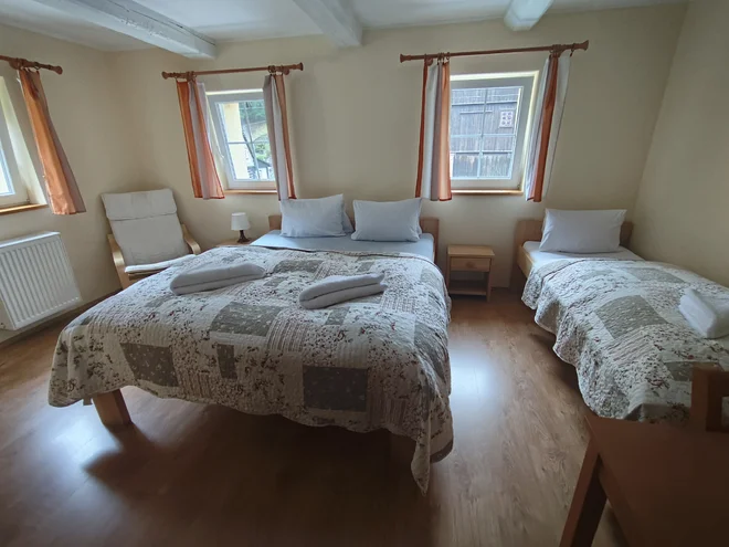 Ubytováni budete v jednoduše zařízeném dvou- až čtyřlůžkovém pokoji s televizí a vlastní koupelnou se sprchovým koutem. Na výběr máte také apartmány s kuchyňkou, ve kterých se pohodlně vyspí až 6 osob. V celém penzionu i restauraci se připojíte na bezplatnou Wi‑Fi.
