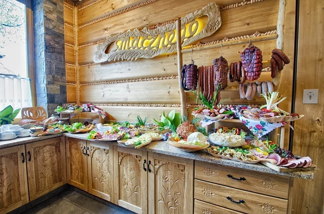 V hotelu se nachází restaurace s výbornou regionální kuchyní, stejně jako typická „goralská místnost“ (koliba) s krbem. Ve vašich balíčcích jsou zahrnuty bohaté snídaně podávané formou bufetových stolů.