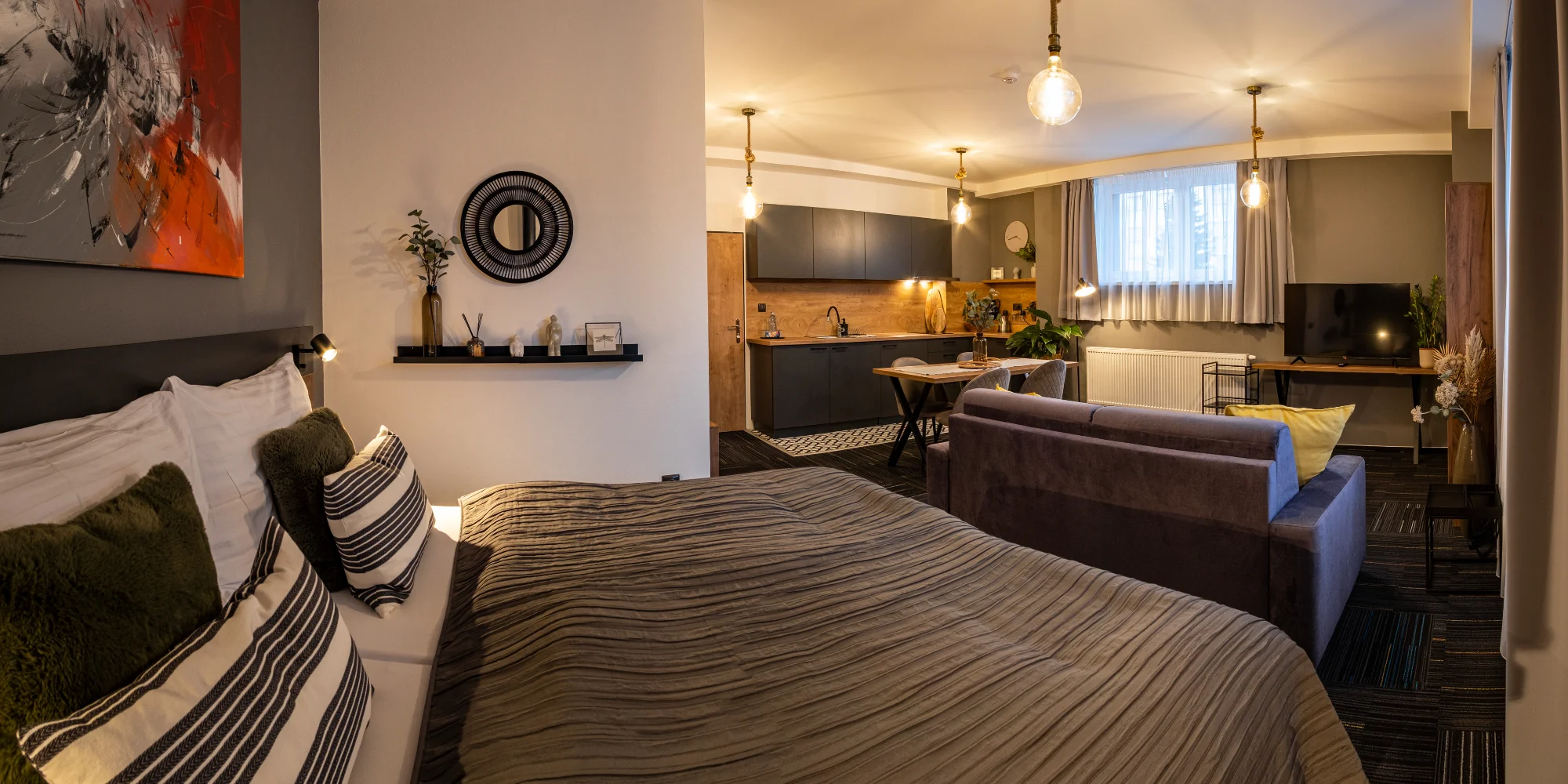 Městský penzion Mamut s ubytovací kapacitou 23 míst svým hostům nabízí 4 dvoulůžkové pokoje4 apartmány s kompletně vybavenou kuchyňkou. Penzion má samostatný vchod s recepcí. Stylové apartmány mají vše, co potřebujete, ať už pro váš odpočinek, nebo aktivní rodinnou dovolenou. Všechny ubytovací jednotky jsou klimatizované s bezplatným Wi‑Fi připojením dostupným v celém areálu. Ve všech vkusně a příjemně zařízených pokojích mají hosté k dispozici šatní skříň, TV s plochou obrazovkou, lednici a soukromou koupelnu. Apartmány mají také plně vybavenou kuchyňskou linku s varnou deskou.