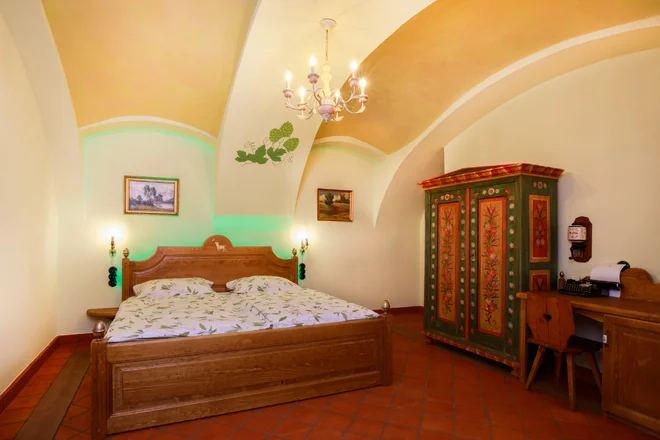 Podle vašeho výběru vám připraví pokoj Hop (chmel), Barley (ječmen) nebo Wheat (pšenice). Všechny jsou zařízené ve staročeském stylu, převládá v nich dřevo, zdobí je malované skříně s vyřezávanými detaily, k lenošení zvou pohodlné ušáky v blízkosti kachlových kamen, ale třeba i vyhřívané posezení na parapetu okna.