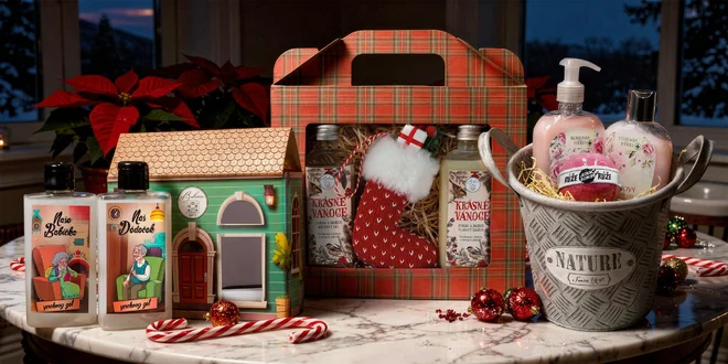 Provoňte letošní Vánoce milým dárkem – voňavou sadou kosmetiky v krásném balení, která potěší rodiče, prarodiče, kamarádky i maminky. Na výběr je pestrá škála balíčků, které obsahují třeba levandulový sprchový gel a šampon nebo sprchový gel s vůní jablka a skořice, případně dětská sada s olivovým olejem, který je jemný a ideální právě pro dětskou pokožku. A na to, aby mytí byla zábava, dohlédne dinosaurus!