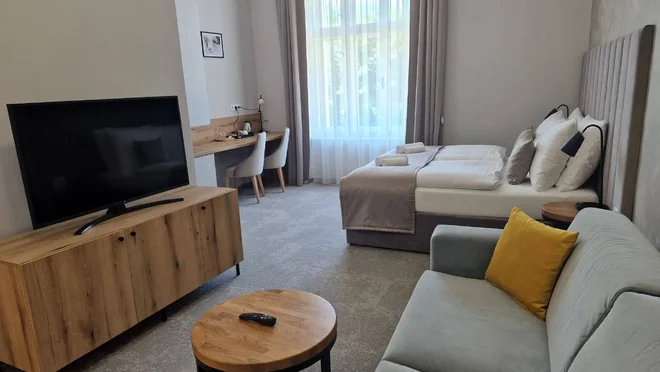 Ubytujete se v pokojích typu Deluxe a Standard. Pokoje Deluxe mají vysoké stropy a díky velkým oknům jsou světlé a vzdušné. Na míru vyrobený nábytek a pečlivě vybrané doplňky umocňují pocit pohodlí. Pokoje Standard jsou podkrovní a můžete se v nich pokochat původními dřevěnými trámy, které se podařilo zachovat.