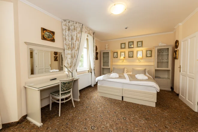 V hotelu si budete užívat intimní atmosféru, která přímo vybízí k relaxování. Jedinečná poloha umožňuje každodenní pohodlné absolvování pitné kúry u pramenů, zároveň budete mít blízko většinu památek i obchodů. Hotel navíc přímo sousedí s krásným barokním kostelem.