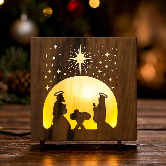 Tip: Pořídit můžete i stolní lampičku s motivem betlému. Ovládá se dotykovým tlačítkem na zadní straně (lze jím regulovat intenzitu světla), napájení pak zajišťuje USB kabel.