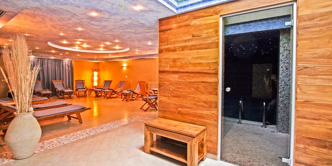 Wellness o rozloze 450 m2 bude pro vás oázou klidu i odpočinku. Neomezeně můžete relaxovat v zážitkovém bazénu s hydromasáží. V saunové části se zahřejete ve finské, infra a parní sauně s aromaterapií. Následně se ochladíte ve studeném bazénu. Nechybí ani relaxační zóna s čajovým koutkem a zdraví prospěšná solná místnost s vodními postelemi. V rámci pobytu ještě získáte jeden wellness kupón na klasickou či aroma masáž. Půlhodinové hýčkání v aroma koupeli dostanete jako bonus, pokud strávíte v hotelu více než 5 nocí.