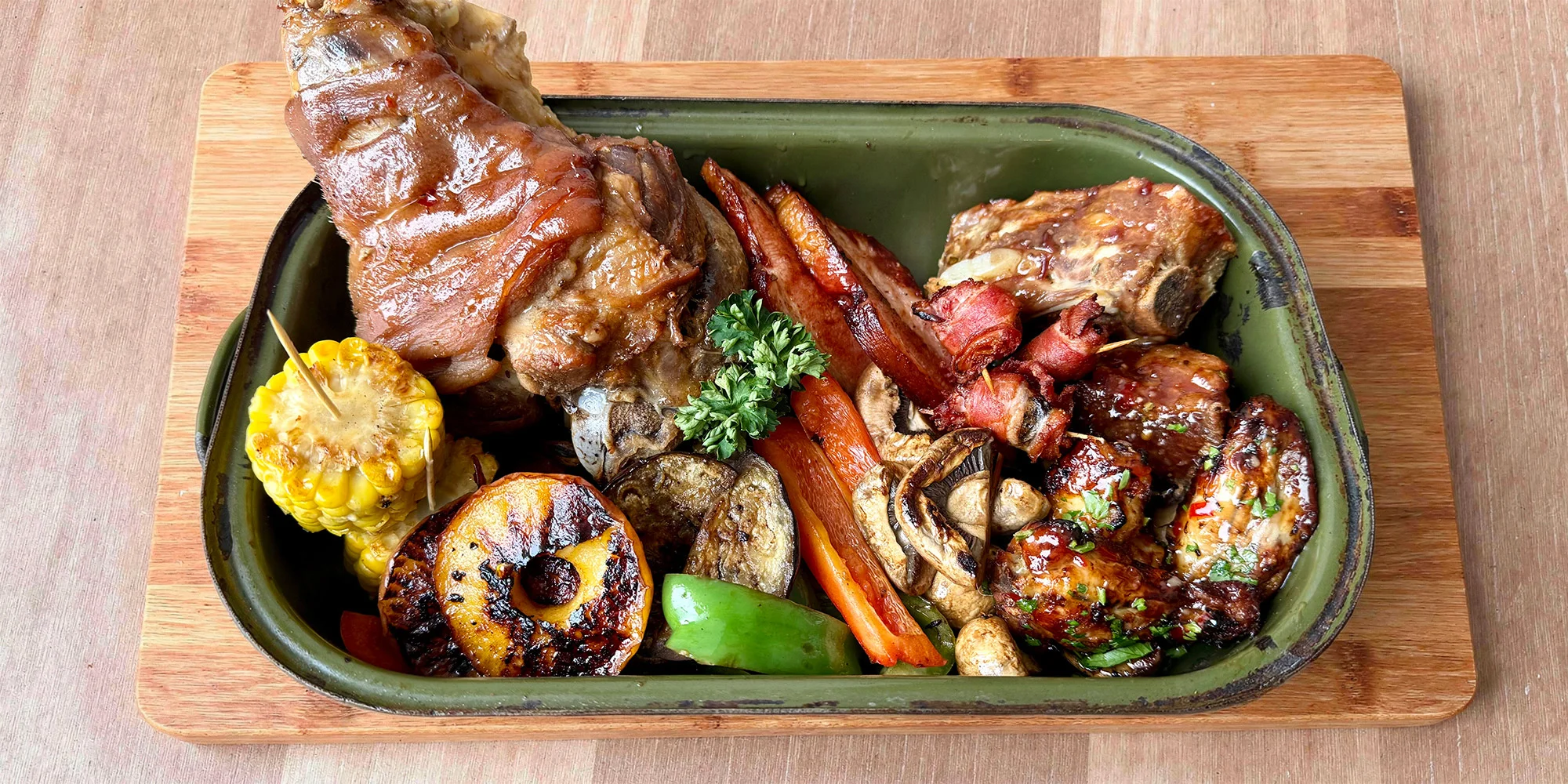Odměnou však nebude jen pivo, ale také spousta dobrot. V ceně totiž máte 2 (či více, dle varianty) Industriální pekáče. Co si pod tímto názvem představit? Tak například pečené vepřové koleno, kuřecí křídla, BBQ žebra, uzené maso… a také játra a švestky ve slanině nebo grilovanou kukuřici. Hladoví tak jistě odcházet nebudete.