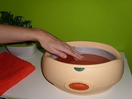 Parafín je speciální vosk obohacený o vitamín E, který může obsahovat další přídavné účinné složky. V našem studiu používáme aromaterapeutický parafín s obsahem esenciálních olejů z pomeranče, vitamíny a betakarotenem. Hlavní předností parafínu je schopnost zadržovat teplo. Při této proceduře se ruce několikrát ponoří do speciální lázně s tekutým parafínem o teplotě 55°C. Na rukou se vytvoří jakési parafínové rukavičky, které působí jako lokální termoterapie. Během zábalu postupně parafín předává rukám suché teplo a minerály do pokožky, dochází postupně ke hloubkovému prohřátí a zlepšení prokrvení rukou. Nastartuje se tak reakce organismu, kdy dochází ke zvýšené regeneraci tkání, uvolnění a snížení bolesti. Pokožka bude vyživená, hydratovaná a sametově hebká. Blahodárné účinky parafínu jsou rovněž doporučovány při bolestech drobných kloubů rukou a ztuhlého zápěstí.