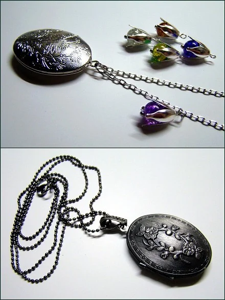 ANTIQUÓs - náhrdelníčky - otvírací medailonky v „antiq“ stylu ve tvaru oválku s květinovými ornamenty.