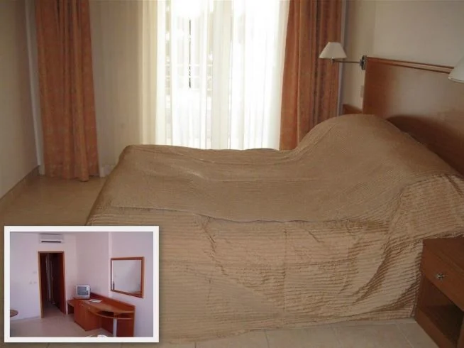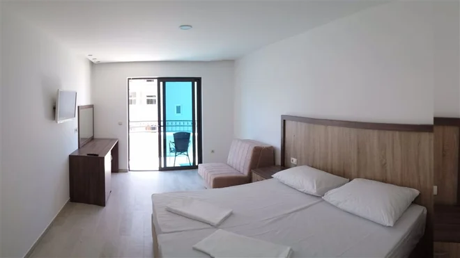 Část pokojů je s výhledem na moře (za příplatek na místě 3 €/noc). Za příplatek je možná v některých pokojích klimatizace.
