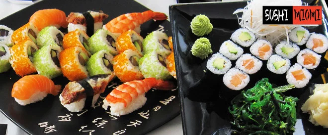 Dopřejte si v restauraci Miomi jedinečný gurmánský zážitek. Výběr z menu obsahuje 34 vynikajících kousků sushi plus wasabi, zázvor, mořské řasy a sushi salát.