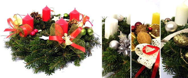 Přinášíme vám kompletní soupravu pro vytvoření adventního věnce. Nemáte-li potřebné vybavení a materiál, ale chcete tvořit s dětmi či se pochlubit vlastnoručním originálem, pak je pro vás tato sada to pravé! Nabízíme čtyři barevné varianty, zlatou, stříbrnou, červenozelenou a tradiční přírodní se svíčkami z včelího vosku. Nejedná se o žádný nicotný věneček, tento zaručeně vzbudí pozornost – má průměr 30 cm a dostatek materiálu k bohatému zdobení, při jeho zdobení si tedy užijete spoustu zábavy!