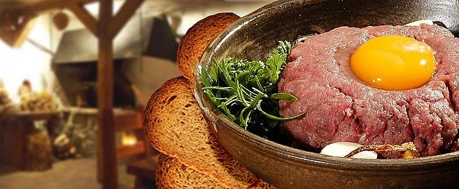 Dnešní nabídka zahrnuje jemný tataráček z kvalitní hovězí kýty z mladého býčka českého chovu s 10 topinkami.