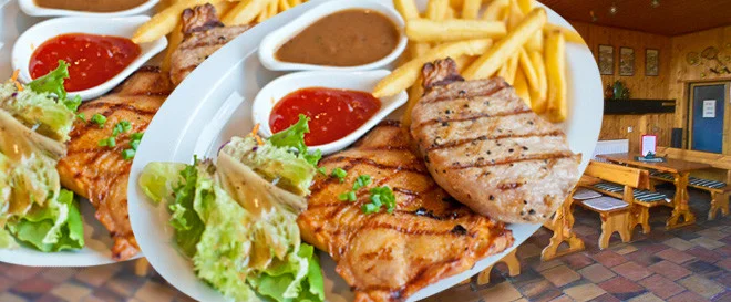 Nechte se zlákat do Restaurace Na Scestí na výsostnou baštu. Vašemu stolu a dvěma porcím hranolků budou kralovat 2 kuřecí steaky s hermelínem.