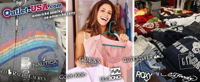 Outlet USA je značkový ráj, kde najdete americké oblečení za skvělé ceny. Vybírat můžete třeba ze značek Guess, Calvin Klein, Billabong, GAP, Quiksilver, Ralph Lauren, Ed Hardy, Tommy Hilfiger neboAbercrombie & Fitch.
