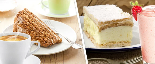 - 2× zákusek Napoleonka + 2× jahodový mléčný koktejl