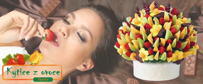 Vyzkoušejte absolutní novinku na severu Čech – ovocné kytice a ovocné bonboniéry, nyní navíc s 50 % slevou !!!Vše je 100 % čerstvé, navíc pokud zvolíte možnost v kombinaci s čokoládou, pochutnáte si navíc také na pravé belgické čokoládě Callebaut.Ta je vhodná i pro ty, kteří mají alergii na ořechy, stopy ořechů a lepek, takže si pochutná jistě každý! Vybíráme vždy pečlivě právě pro Vás to nejlahodnější ovoce. Buďte originální a potěšte sebe nebo své blízké netradiční vazbou ze slaďoučkého ovoce a výtečné čokolády. Plánujete svatbu?Potom si jeden z nejkrásnějších dnů Vašeho života oslaďte a ozdobte nezapomenutelnými 100% čerstvými jahodami v belgické čokoladě Callebaut!