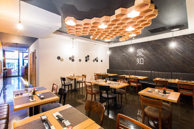 Uvnitř vás čeká čistý prostor v minimalistickém stylu, ve kterém nebude váš pohled na barevné sushi rolky nic rušit.