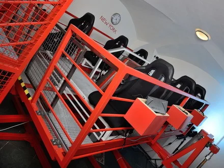 - Emoce pak umocňuje nakloněná plošina, pohybující se pod sedadly pasažérů.