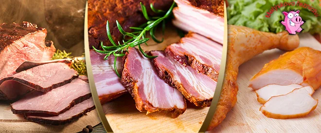 - Uzený bok (1–1,1 kg) a uzené kuřecí čtvrtky (1–1,1 kg)