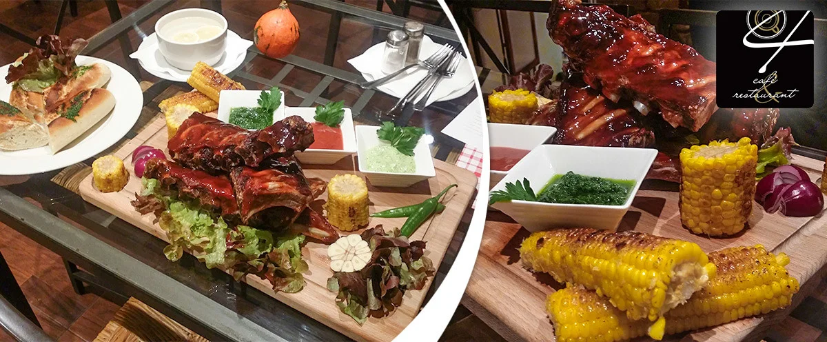 Dohromady dostanete na dvou talířích 1300 g žebírek – vyhrňte si rukávy a pusťte se do nich holýma rukama v Café 04. Nebojte, bude to košér, na umaštěné prstíky tu pro vás připravili misku s horkou vodou a citronem.
