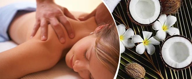 Kombinovaná kokosová masáž spojuje prvky více masáží, provádí se bio kokosovým olejem, který je známý pro své regenerační a zvláčňující účinky a má velmi příjemnou vůni.