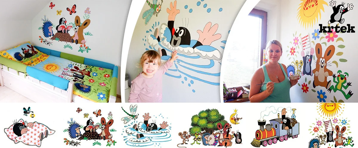 Nemalujte čerta na zeď – vždyť na stěny dětských pokojíčků se lépe hodí usměvavý Krteček. Nevadí, že nejste malíři od fochu, se šikovnou šablonou to zvládnete levou zadní.
