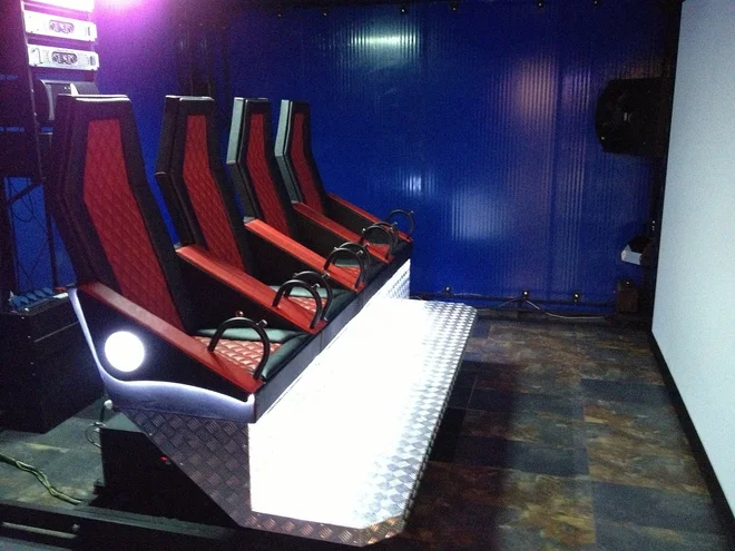 Po příchodu se pohodlně usadíte do speciálních sedadel, která vás však dlouho v klidu nenechají. Mění polohu a vibrují podle toho, co se zrovna děje na plátně. Kolem vás bude navíc proudit vzduch, mezi efekty nechybí déšť, blesky, mlha, bubliny, vítr, vibrace, plazení pod nohama a při hororech také pořádnou dávku napětí.