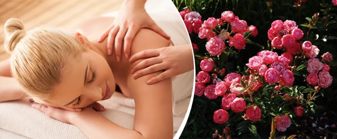 K masáži používáme přírodní, za studena lisovaný, olej s přídavkem aroma oleje s vůní růžových plátků.