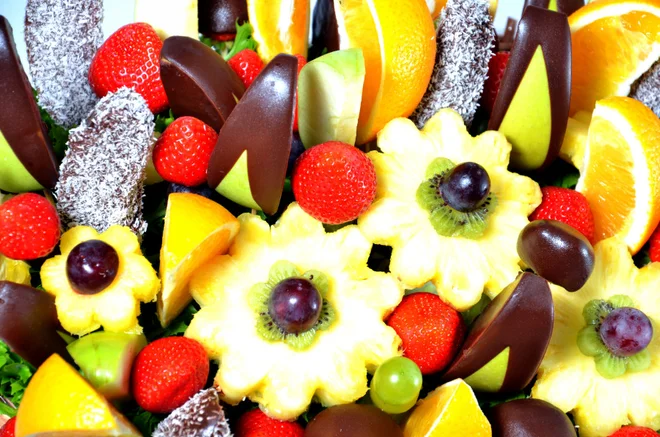 Naše kytice jsou vyráběny z nejkvalitnějšího ovoce, které pečlivě vybíráme. Dopřejte si kytici plnou vitamínů ve formě úžasných sladkých jahod nebo kombinaci kiwi, pomerančů, hroznového vína, ananasu a jablek. Vše navíc krásně ozdobené pravou belgickou čokoládou.