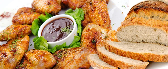 Kuřecí křidýlka zasytí 2–4 jedlíky, jsou připravená v medu a BBQ marinádě a dlouze pečená, aby se přímo rozplývala na jazyku.