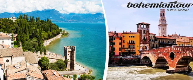 - den – ráno po snídani město Malcesine – výjezd lanovkou, která se otáčí kolem své osy na horu Monte Baldo cca 2200 m.n.m. (úžasný pohled na jezero Lago di Garda), případně možnost dopoledního koupání u jezera. Přejezd do Verony, prohlídka města (Dům Romea a Julie se slavným balkónem, románská bazilika San Zeno Maggiore, hrad Castel Vecchio, italské náměstí Piazza delle Erbe s kašnou Fontana di Madonna Verona, barokní palác Palazzo Maffei, věž Torre Lamberti, náměstí Bra s Arenou připomínající římské Coloseum). Ve večerních hodinách odjezd zpět do ČR.