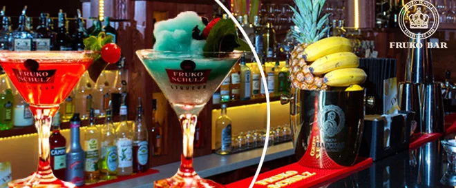 Fruko bar připravil unikátní koktejlové menu s velkým výběrem nápojů, připravených na bazi prémiových výrobků společnosti Fruko-Schulz a také exkluzivních značek alkholických nápojů z celého světa.