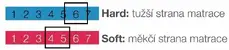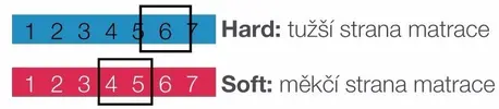 - Tvrdší strana (modro-zelená) - opatřena 3D Rainbow technologií, která umožňuje maximální využití výhod každého typu pěny. Vyrobena je z prodyšné pěny Flexifoam® vyšší hustoty a paměťové pěny.
