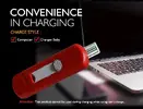 Vysunutím tlačítka směrem nahoru dojde k nažhavení topného tělesa a zároveň se rozsvítí LED dioda indikující zapnutí - z bezpečnostních důvodů žhne těleso cca 10 vteřin. Pro další zapálení je třeba opět zasunout a vysunout horní část zapalovače. Nabíjení probíhá pomocí USB konektoru, který se vysouvá druhou stranou zapalovače. |