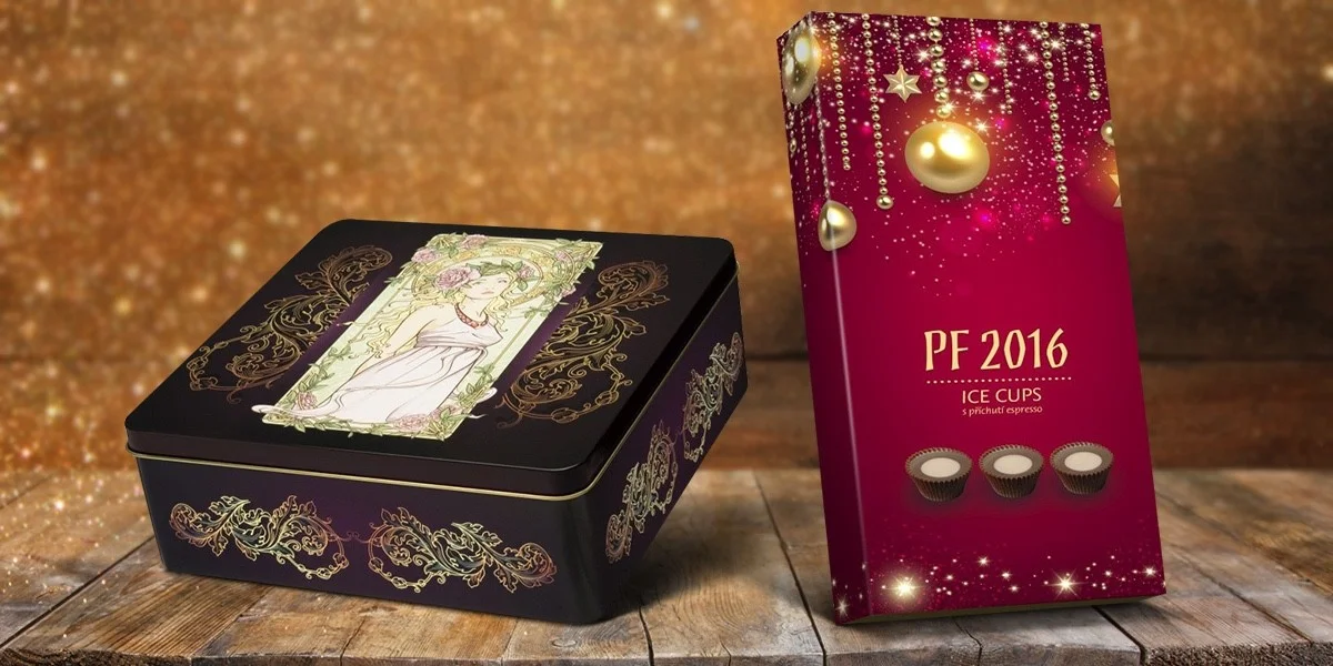 Pralinek je celkem 32 kousků, jsou plněné a vyrobené z belgické čokolády. Dostanete je v plechové dóze, kterou zdobí secesní motivy.