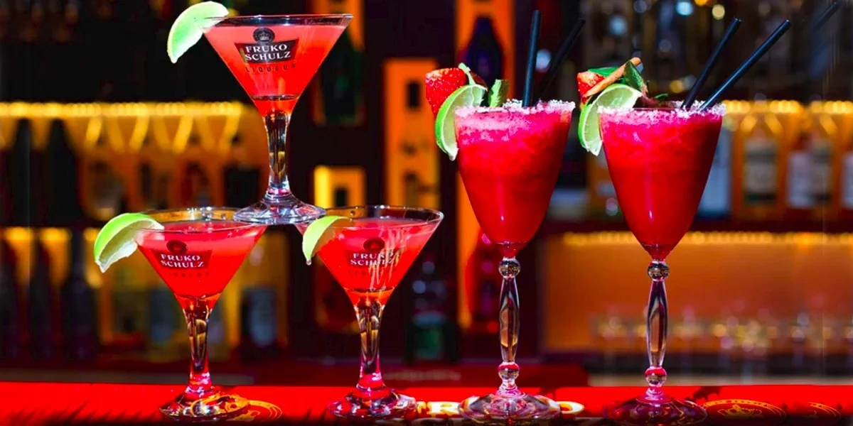 - Raspberry Fruit Daiquiri – rum, ovocné pyré, ovocný sirup, čerstvá limetka
