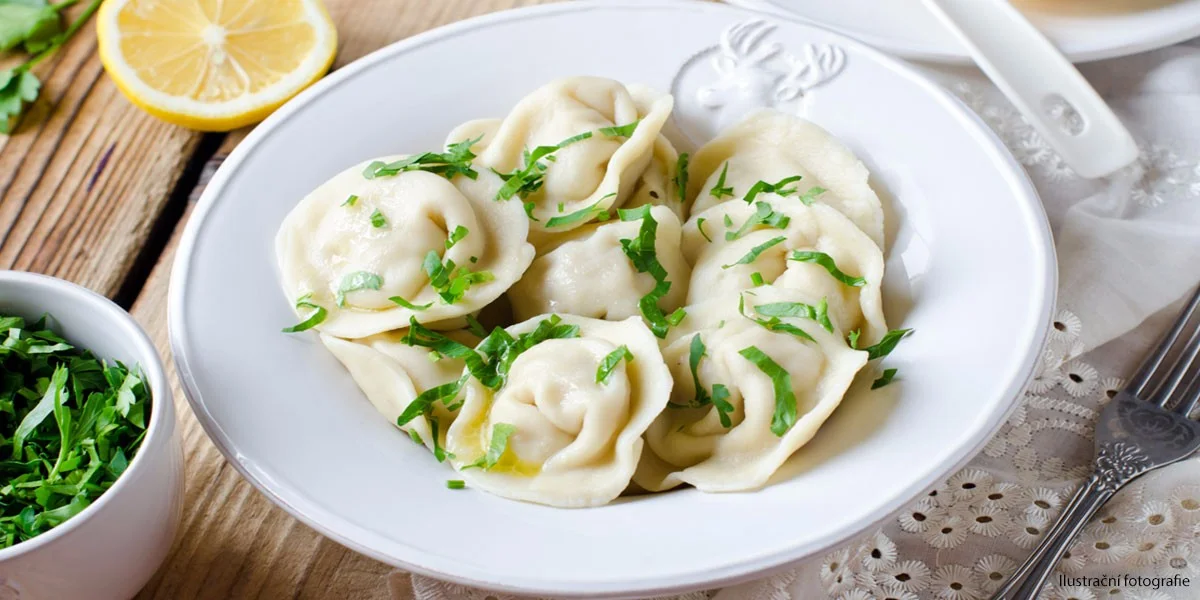 Postaví před vás talíř ručně vyráběných pelmení se zakysanou smetanou a bylinkami. Jedná se o plněné těstovinové taštičky uvařené ve vodě. Uvnitř tenkého těsta z mouky a vajec najdete mleté hovězí a vepřové maso.